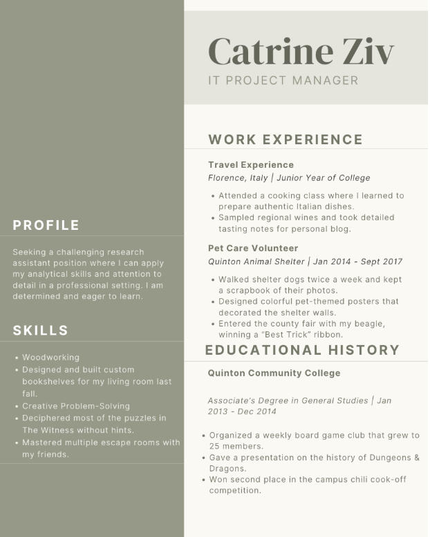Resume with Irrelevant Hobbies instead of Qualifications