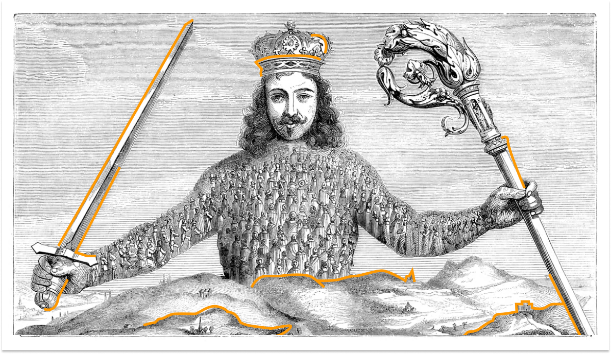 The author, English philosopher Thomas Hobbes, argues for the benefits of sovereign rule. Despite all its flaws, he considers it a necessary form of government over human society. A strong ruling hand to combat the chaos and brutality of human nature (which at that point in time manifested in the Civil War).