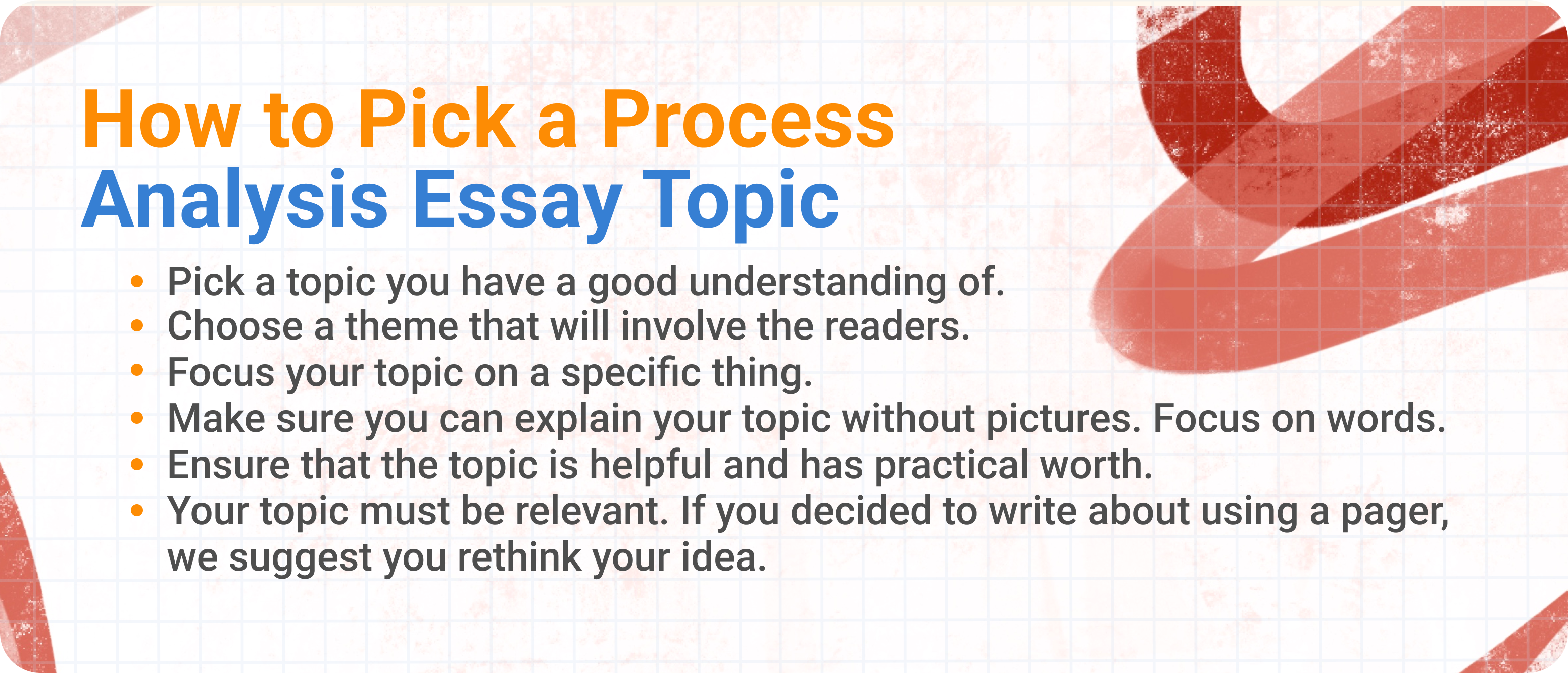 Sometimes, your professor will assign you a process analysis topic. And sometimes, you will have to pick a topic by yourself.
