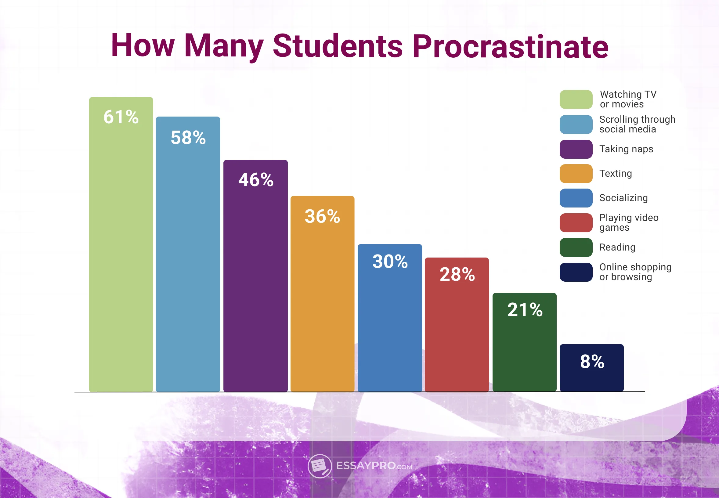 This article will go over the procrastination stats among students and how this habit affects their grades. And remember that external assistance can sometimes help you finally get to work. EssayPro is a reliable space where college students can buy a custom essay when deadlines are looming.